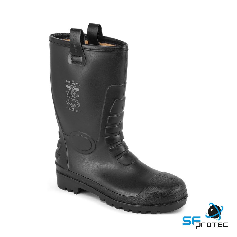 - Uma alternativa impermeável para a tradicional rigger em pele. Biqueira e palmilha de aço, totalmente impermeável, forrada e com abas laterais para facilitar o calçar.