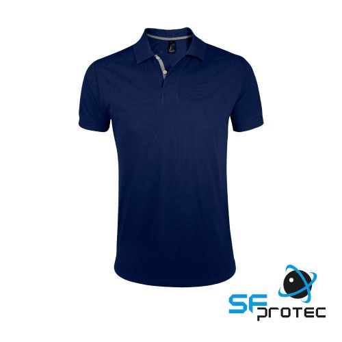 - Interior de colarinho, carcela, aberturas laterais e exterior da manga com tira de sarja contrastante